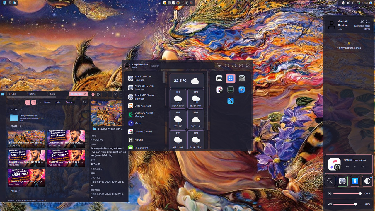 La distribución utiliza Arch Linux como base, lo que permite contar con un sistema moderno y actualizado.